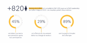 Dans le cadre plus spécifique de la gestion des talents, la Banque fait évoluer ses processus et procède à la revue complète annuelle de son bassin de talents et ses hauts potentiels, s’assurant de mettre en place des plans de développement personnalisés. C’est dans ce cadre que s’inscrit le partenariat avec L’effet A, instauré il y a dix ans et devenu un levier incontournable pour encourager les femmes de la Banque à assumer leur ambition, oser se mettre de l’avant et faire rayonner leur leadership.